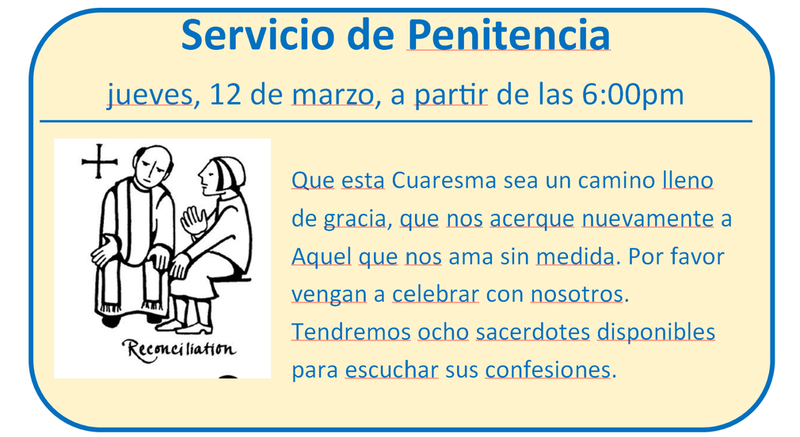 Servicio de Penitencia de Cuaresma: 12 de marzo 6:00pm