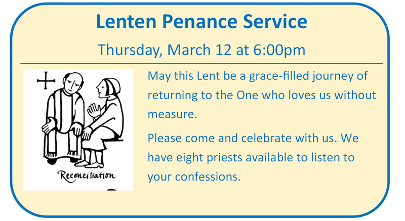 Lenten Penance Service: March 12, 6:00pm
